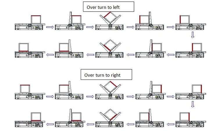 อุปกรณ์ประกอบด้วยเครื่องหลักระบบไฮดรอลิกและระบบควบคุมไฟฟ้า กลุ่มของครีบลำแสงสองตัวถูกใช้เพื่อคว่ำและเคลื่อนที่พร้อมกัน กระบวนการพลิกของ Flippers ลำแสงทั้งสองถูกควบคุมโดยวาล์วซิงโครไนซ์ไฮดรอลิกขั้นสูงเพื่อให้แน่ใจว่าการหมุนแบบซิงโครนัสของแต่ละแขนพลิกกลับในระหว่างกระบวนการเอียง ควบคุมกระบวนการหมุนเวียนของชิ้นงานด้วยตนเองเพื่อให้ได้ผลประกอบการ 90 °ของชิ้นงาน