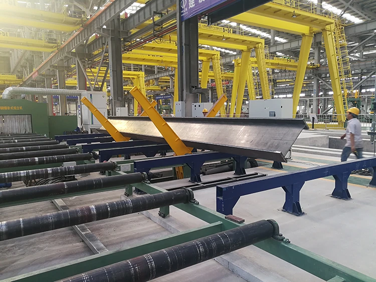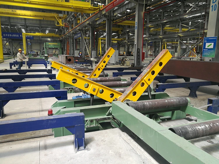 พีซีสองชิ้นที่เคลื่อนย้ายได้ 180 °ลำแสงครีบลำแสงมีให้ในแต่ละชุดส่วนใหญ่ใช้สำหรับการเปลี่ยนชิ้นงานหลังจากการเชื่อมในด้านหนึ่ง เมื่อทำงานให้ยกชิ้นงานออกจากโต๊ะลูกกลิ้งหรือชั้นวางชิ้นงานและตัวลดการขับเคลื่อนทั้งสองวงเล็บพลิกคว่ำเพื่อย้ายแบบซิงโครนัสเพื่อย้ายชิ้นงานไปที่ด้านข้างของโต๊ะลูกกลิ้งหรือชั้นวางชิ้นงาน จากนั้นถังไฮดรอลิกสองกระบอกขับแขนรูปตัว L สองตัวเพื่อหมุนแบบซิงโครนัส หลังจากที่ชิ้นงานถูกพลิกคว่ำมันจะถูกย้ายไปที่กลางโต๊ะลูกกลิ้งหรือชั้นวางชิ้นงานแล้วชิ้นงานจะถูกส่งไปยังกระบวนการต่อไปหรือเชื่อม
