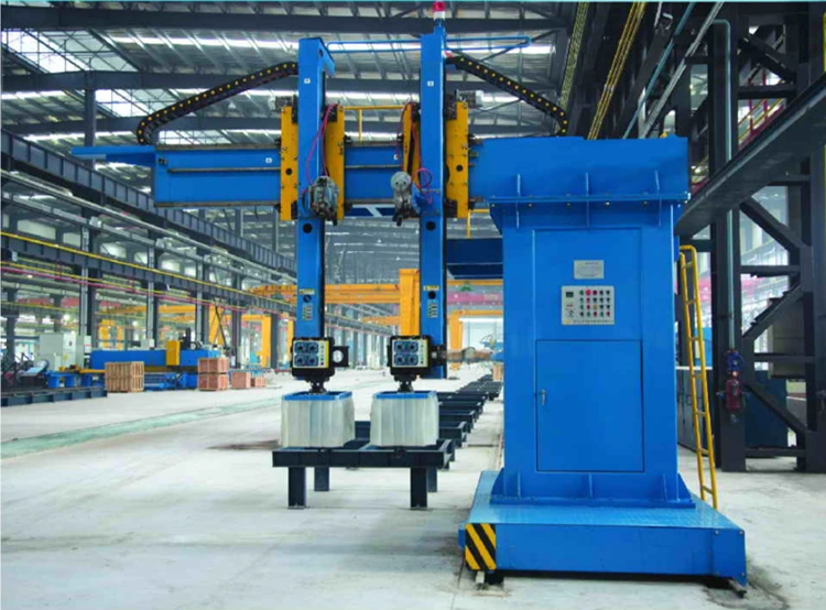 เครื่องนี้เป็นอุปกรณ์พิเศษสำหรับการประกอบและการเชื่อมตำแหน่งของแผ่นซี่โครงเสริมในโพรงด้านในของคอลัมน์กล่อง เป็นผลิตภัณฑ์ที่ต้องการสำหรับองค์กรโครงสร้างเหล็กที่ผลิตชิ้นงานคอลัมน์ The Box เพื่อลดความเข้มของแรงงานและปรับปรุงประสิทธิภาพการทำงาน